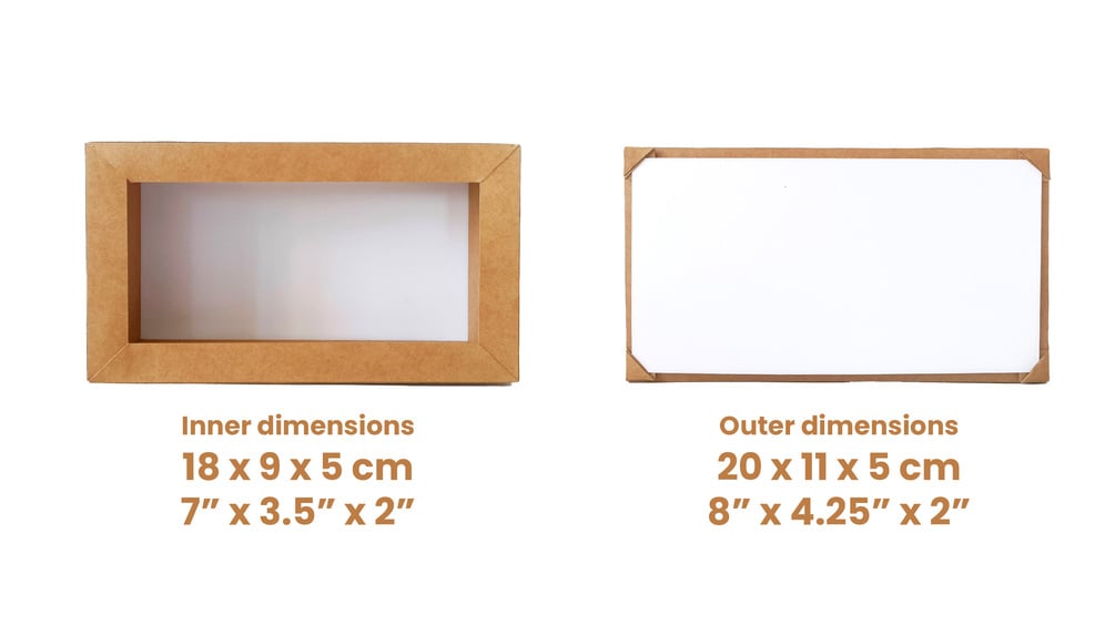 - Inside (W x H x D): 7" x 3.5" x 2" (18 x 9 x 5 cm)